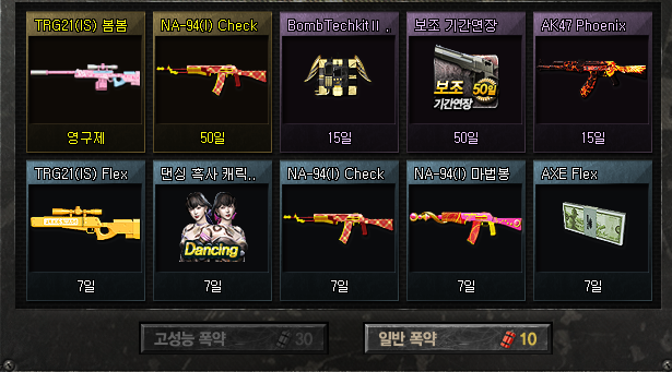 고성능 폭약은 필요 코인이 많은 대신(30개) 유니크, 레어에 당첨될 확률이 높다고 보시면 됩니다.