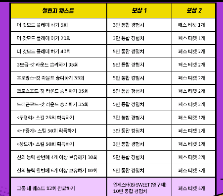 모두 완료하면 윈체스터(IS) SWEET 영구제와 10만 통합 경험치, 그리고 패스 티켓 5장을 받을 수 있습니다.