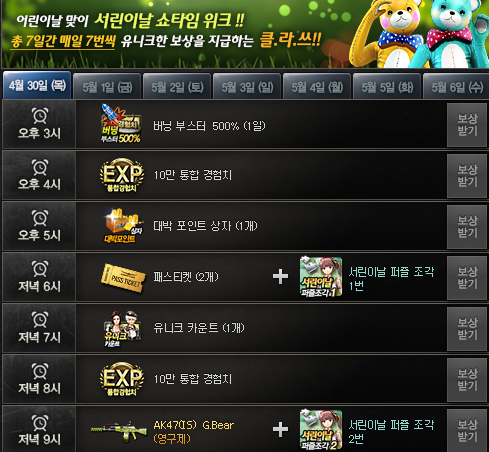 1. 이벤트 기간: 4월 29일(수) 정기점검 후 ~ 5월 14일(목) 정기점검 전