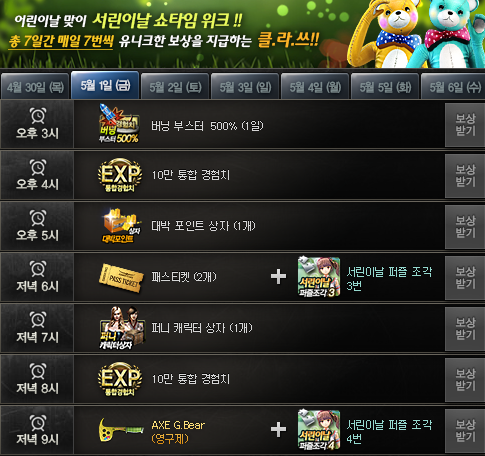 - 이벤트 기간: 4월 29일(수) 정기점검 후 ~ 5월 14일(목) 정기점검 전